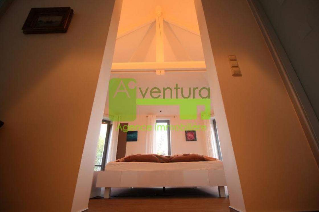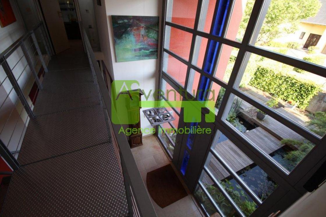 Le premier étage comporte une vaste suite parentale de 50 m² avec dressing et salle de bain. Une passerelle métallique mène aux 3 autres chambres à coucher, aux deux salles de bain, ainsi qu`à une buanderie.