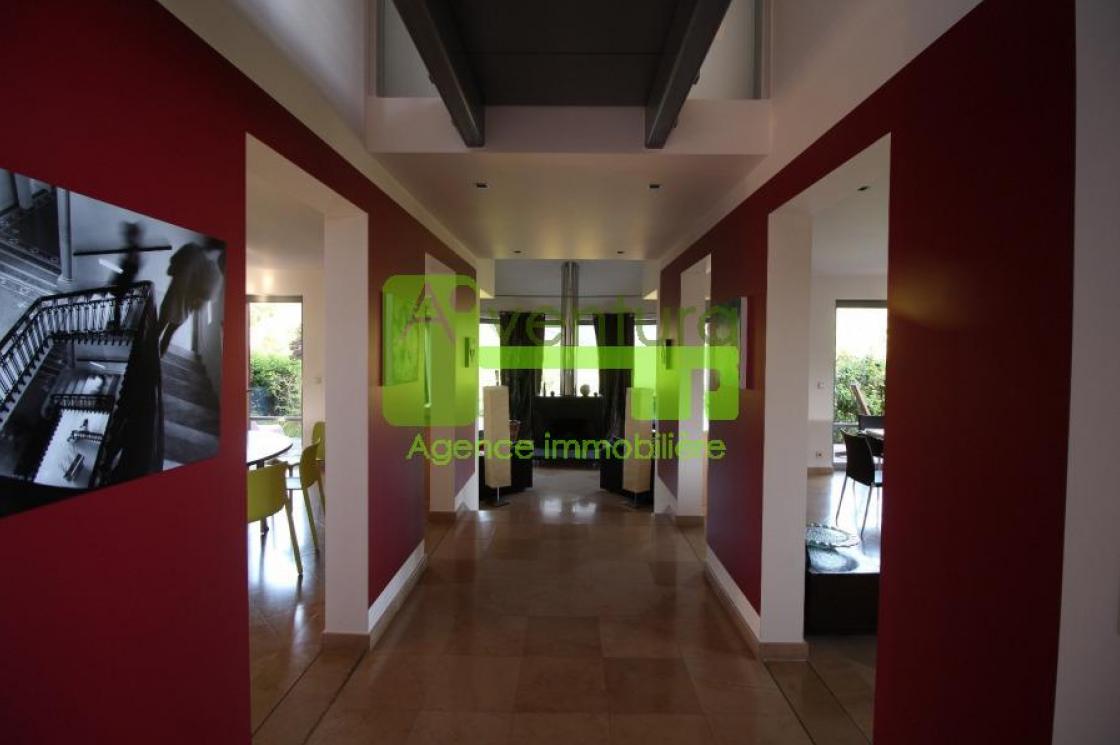 Un double garage et trois grandes caves carrelées ( vin, rangement, et atelier ou salle de jeux) complètent ce bien d`une surface habitable de 270 m² et d`une surface totale de 390 m² .
