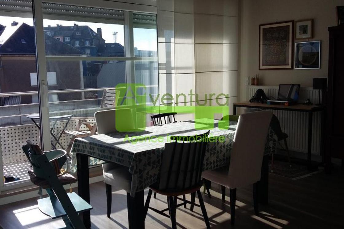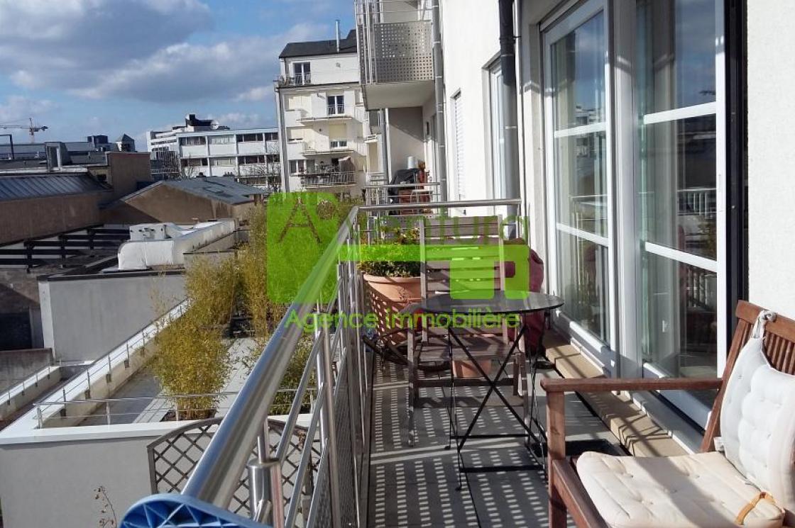 Ce bien est composé de deux chambres à coucher dont une avec une salle de bain en suite, d'une salle de douche ( face à la seconde chambre), d'un grand séjour lumineux avec une cuisine ouverte entièrement équipée et un accès au balcon de 7 m².