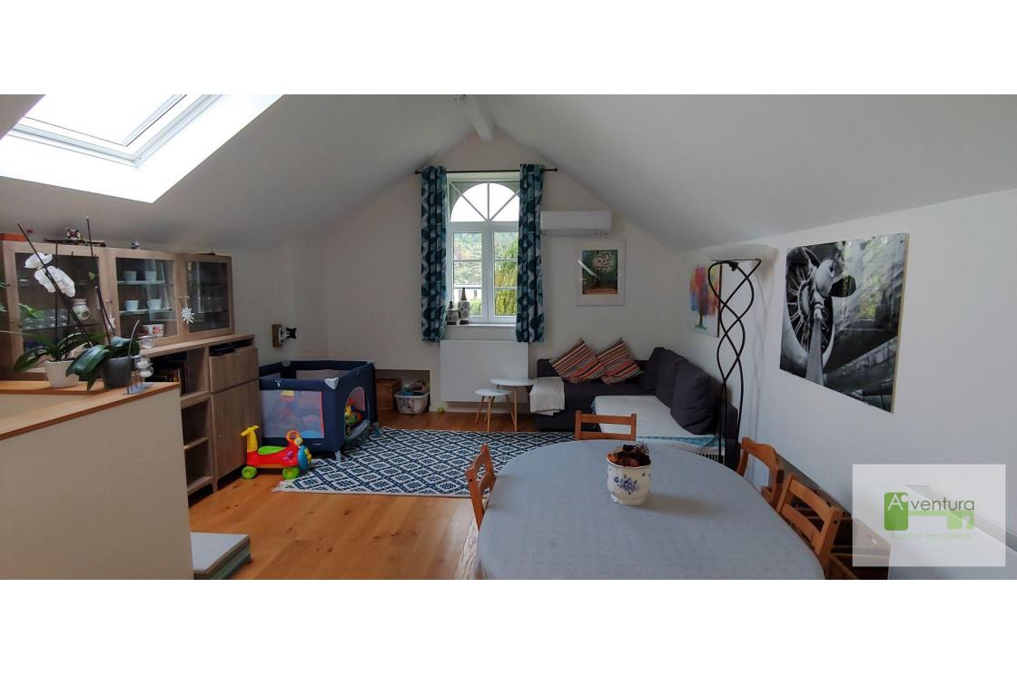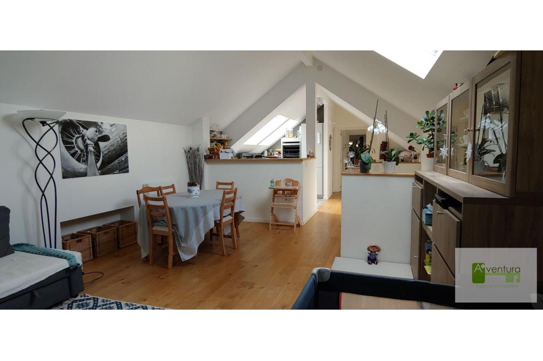 Au coeur du charmant village de Senningen, dans un ancien atelier de menuiserie réhabilité, beaucoup de charme pour cet appartement atypique avec son entrée privative au bout d'un passage fleuri.