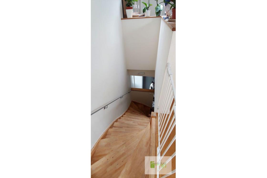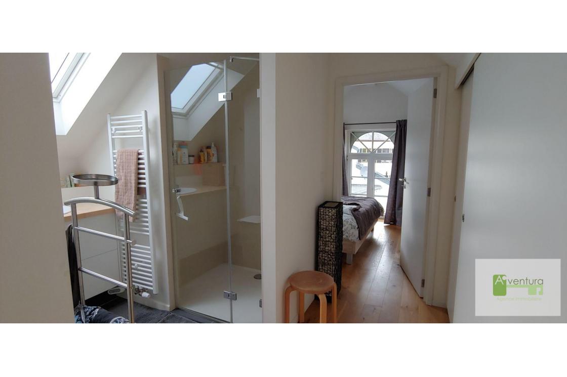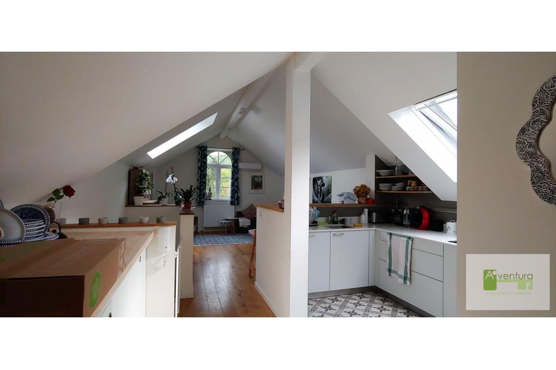 Sous les combles, la suite parentale avec son dressing et sa salle de douche.puis la cuisine ouverte sur le séjour forment un ensemble cosy : parquet en chêne, équipement électroménager de qualité, climatisation, espace buanderie. Un escalier en bois mène au rez-de-chaussée où se trouve une seconde chambre de 8 m2 avec placard et lavabo, un WC, et une douche. Cette pièce est idéale comme chambre d'enfant, chambre d'amis, ou bureau.