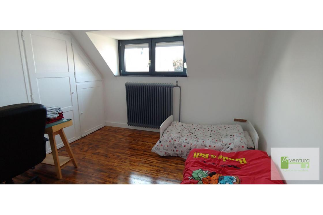 A l'étage se trouvent les 2 chambres à coucher, une salle de bain et une salle de douche. Les combles aménagées pourront faire office de chambre d' enfant supplémentaire ou bureau.