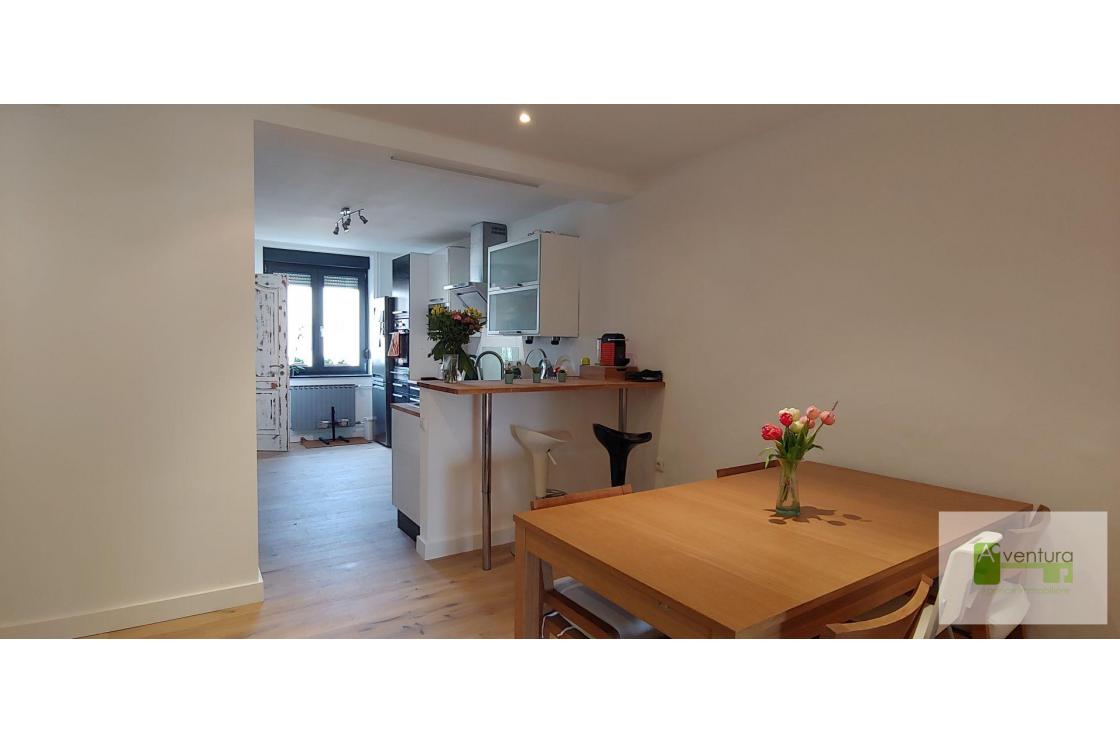 Charmante petite maison mitoyenne rénovée avec gout. Vue sur les champs, le jardin orienté sud-est bénéficie d'un accès direct au chemin pédestre pour de belles promenades ou un accès direct à la place de jeux du quartier.