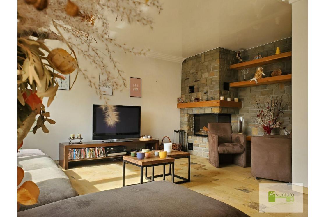 Le rez-de jardin est composé d'un grand séjour avec une cheminée à insert, un WC, une cuisine avec son grand espace repas ouvrant sur une terrasse avec vue sur le beau jardin sans vis à vis.