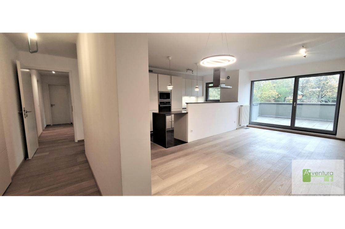 - d'une pièce de vie lumineuse de 34,5 m² avec une cuisine équipée haut de gamme (Leicht) et l'accès à une belle terrasse de 20 m².