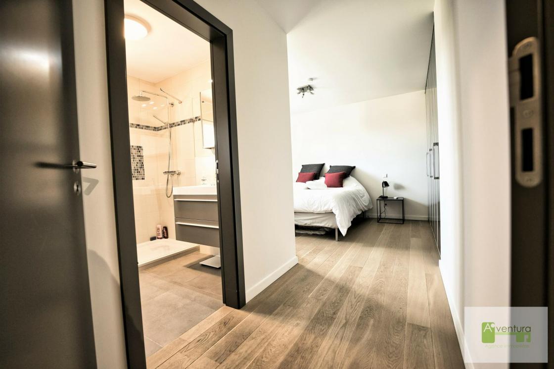 Un couloir mène à l'espace nuit avec ses deux chambres de 14 et 16 m², dont l'une en suite avec salle de douche, une grande salle de bain avec douche et baignoire, une buanderie et un dressing entièrement aménagé de 11 m².