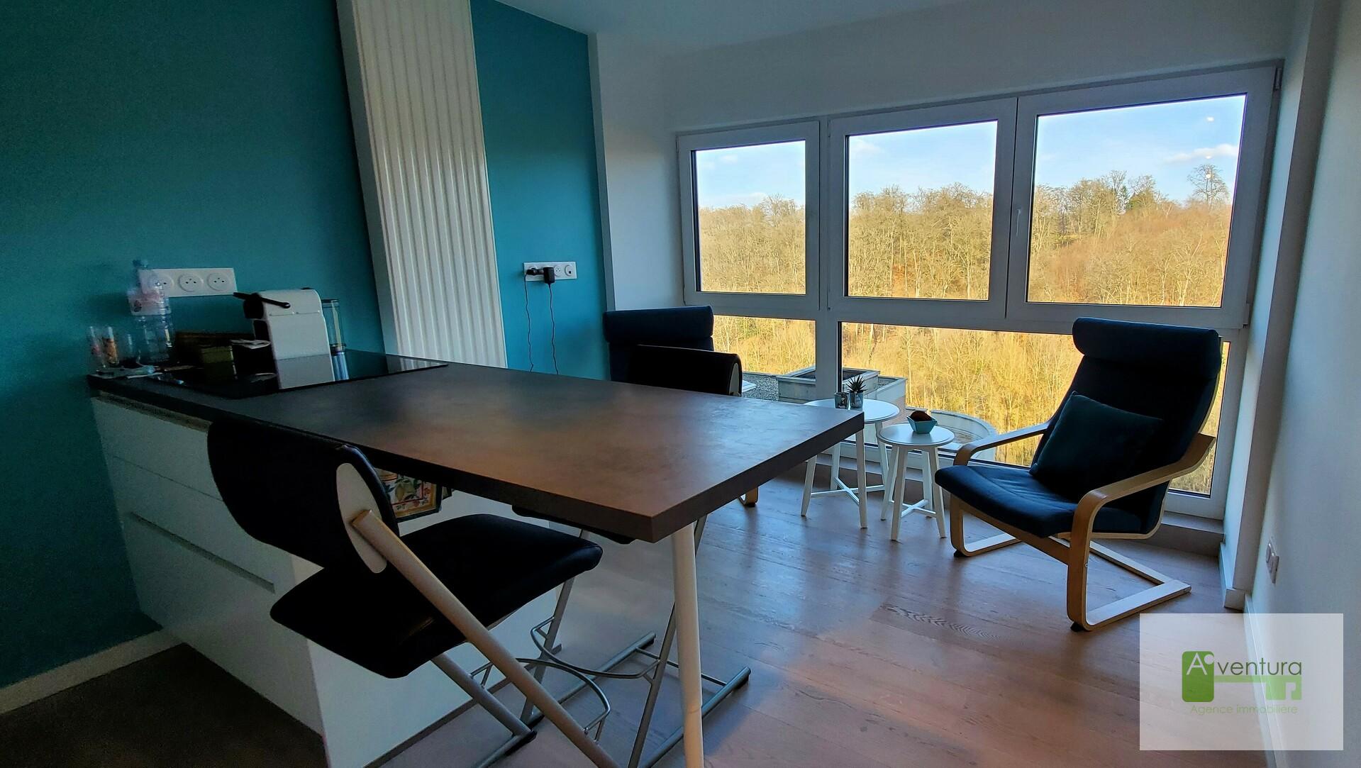 Magnifique rénovation réalisée par un architecte pour ce studio, permettant d'optimiser les espaces et créer de l'intimité et de la convivialité. Entièrement fabriquées sur mesure, les menuiseries en chêne cérusé divisent astucieusement les espaces selon leur fonctions: salle de douche, chambre avec dressing, cuisine entièrement équipée et séjour.Le choix de matériaux de haute qualité contribue au confort des lieux: parquet en chêne, mosaïque Bisazza, robinetterie Grohe, lavabo en Corian, électroménager haut de gamme...La situation en hauteur offre une vue plongeante sur le bois longeant l' Alzette, les nouvelles fenêtres assurent isolation phonique et acoustique. En retrait et sur les hauteurs de la route de Thionville, la Résidence bénéficie des services d'une concierge assurant le bon entretien quotidien des lieux. Une petite cave complète le bien.Pour toutes demandes d'informations complémentaires ou pour organiser une visite:...