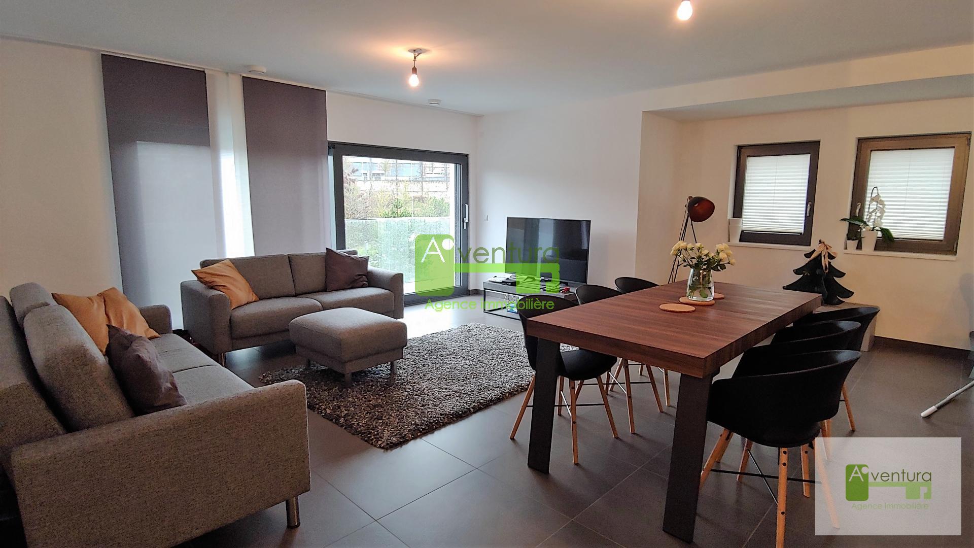 Très belle localisation pour cette petite résidence récente au Kirchberg, rue du Kiem ( face au bâtiment KPMG) avec un bel appartement lumineux meublé au deuxième étage.Prestations luxueuses, cuisine et sanitaires haut de gamme, chauffage au sol. Cet appartement comprend:- Une cuisine haut de gamme avec ilot central, entièrement équipée, ouverte sur le séjour- Un séjour de 35 m² ouvrant par une large baie vitrée sur un balcon d'angle de 10 m²- 2 chambres à coucher de 14 m² et 12 m² . L'une des chambres est uniquement meublée d'une armoire afin de laisser la possibilité de l'aménager en bureau, chambre d'amis ou chambre d'enfant selon les circonstances;- 1 salle de bain avec baignoire, douche, vasque et WC- 1 WC séparé- 1 emplacement dans buanderie avec machine à laver et sèche linge fourni.- 1 cave privative et 1 emplacement intérieur ( possibilité de stationner une seconde voiture à l'extérieur).Bien en excellent état....